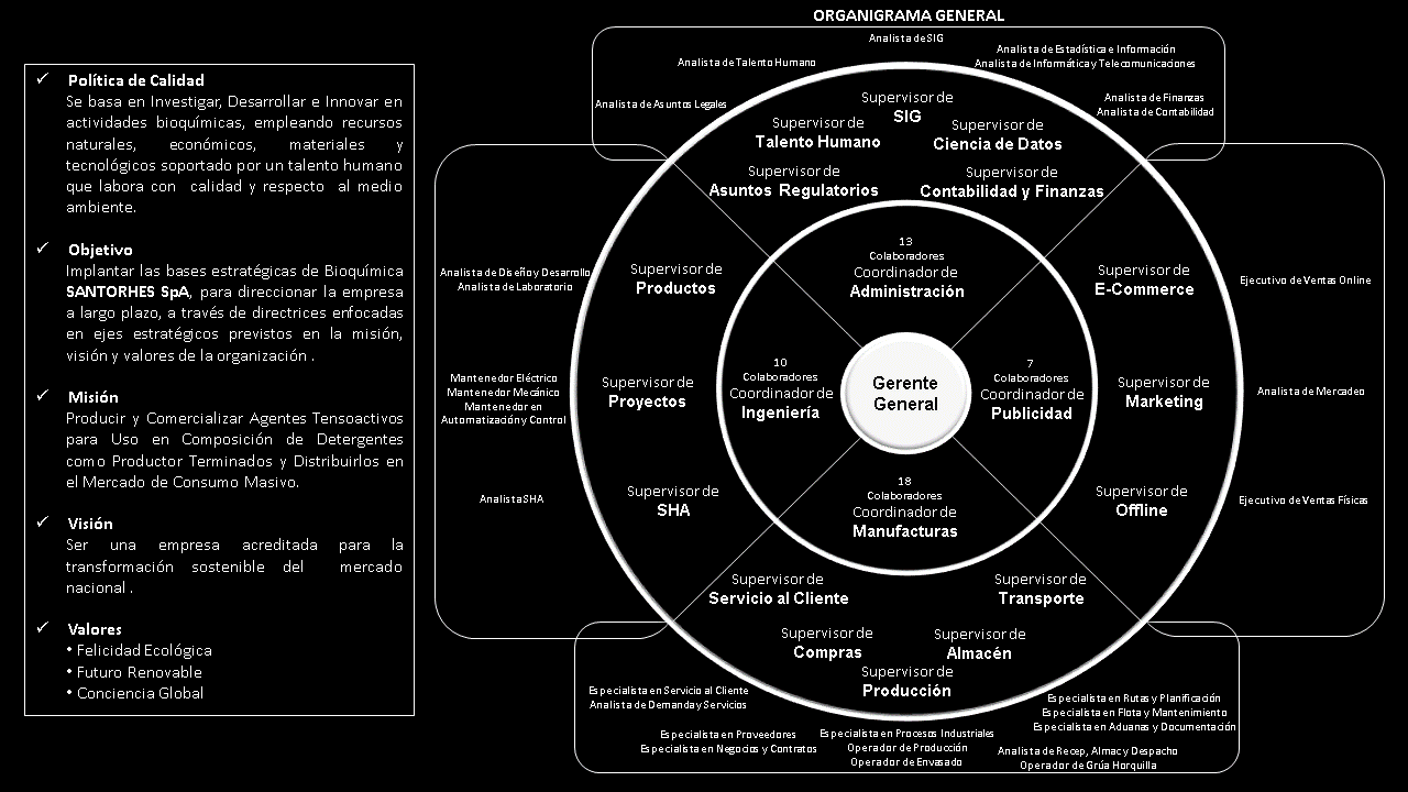 Bioquímica SANTORHES, es una Marca Registrada, que engloba un concepto empresarial y comercial basado en Agentes Tensoactivos para Uso en Composición de Detergentes, fabricados y distribuidos como productos terminados para la venta en los mercados de consumo masivo.